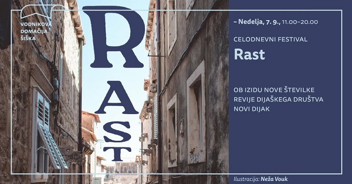 Dijaško društvo Novi dijak ob izidu nove številke istoimenske revije organizira že tradicionalni festival Rast, posvečen dijaški kreativnosti, ki se bo razraščala cel dan v okviru številnih dogodkov.