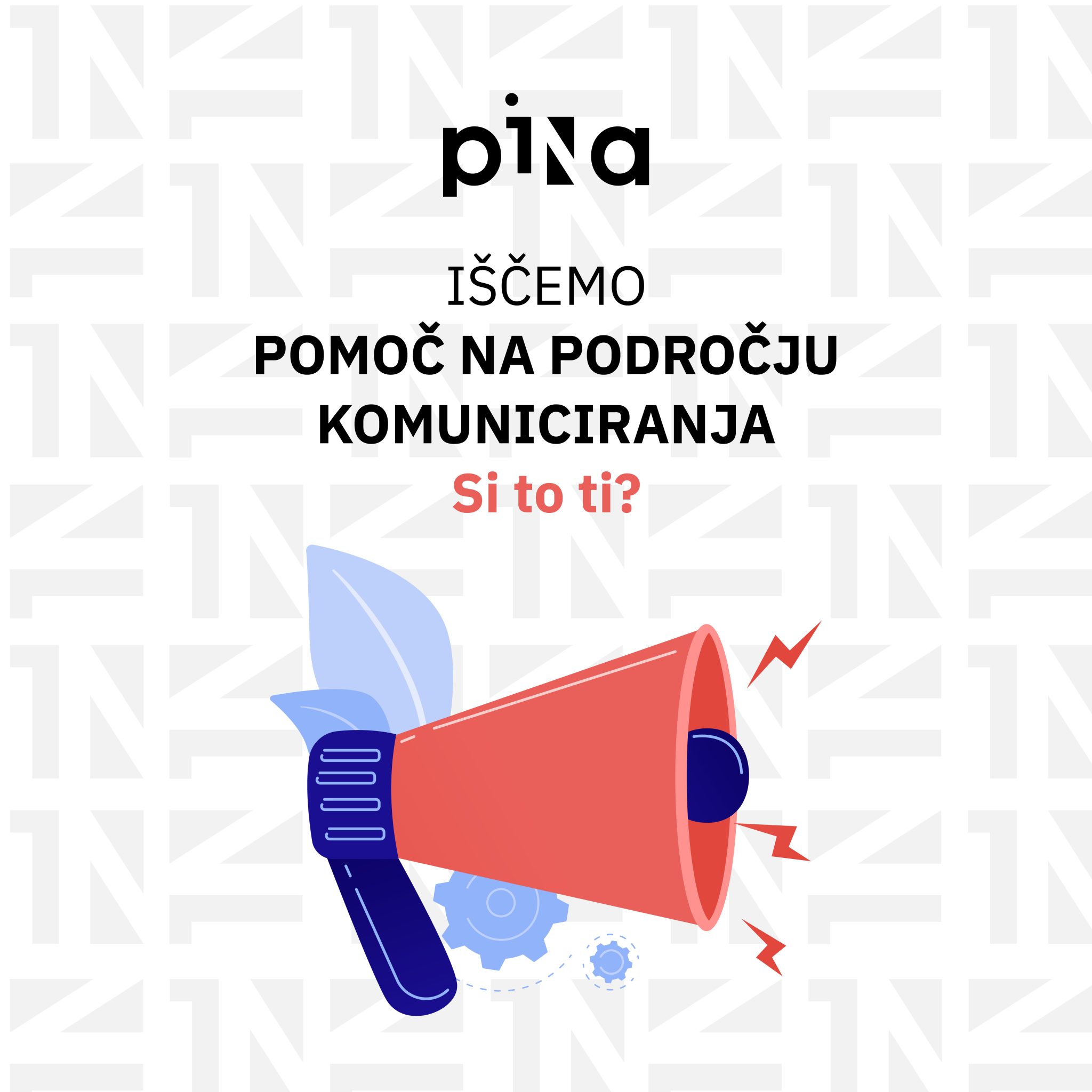 Zaradi nastopa porodniškega dopusta PiNA išče samoiniciativno in motivirano osebo, ki bo sodelavki za komuniciranje pomagala na področju komuniciranja in PiNO učinkovito predstavljala njenim ciljnim skupinam.