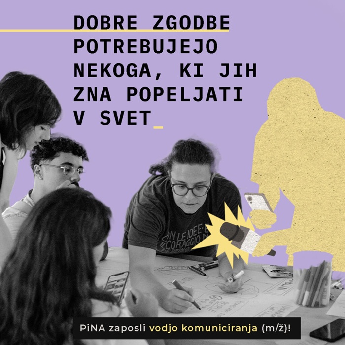 PiNA v svoj kolektiv vabi izkušeno, samostojno in strateško usmerjeno osebo, ki bo prevzela vodenje celostnega komuniciranja organizacije. Iščejo komunikatorja_ko, ki razume vlogo komuniciranja v sodobni družbi, ima izkušnje s področja vodenja (‘leadership’) in zna delovati v projektnem okolju. Delovno mesto vključuje tako strateško načrtovanje kot operativno koordinacijo komunikacijskih aktivnosti v organizaciji z več projekti, ekipo treh sodelavk na področju komuniciranja in oblikovanja ter sodelovanje s partnerji in raznolikimi javnostmi.