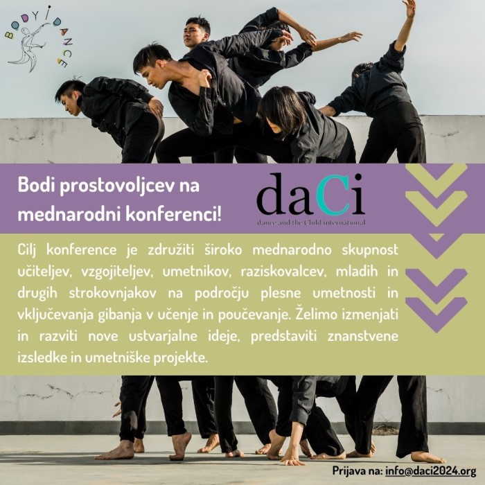 To poletje, bo med 8. in 12. julijem 2024 svetovna konferenca Dance and the Child International v Slovenijo pripeljala 600 plesnih strokovnjakov in mladih plesalcev iz 35 držav sveta.