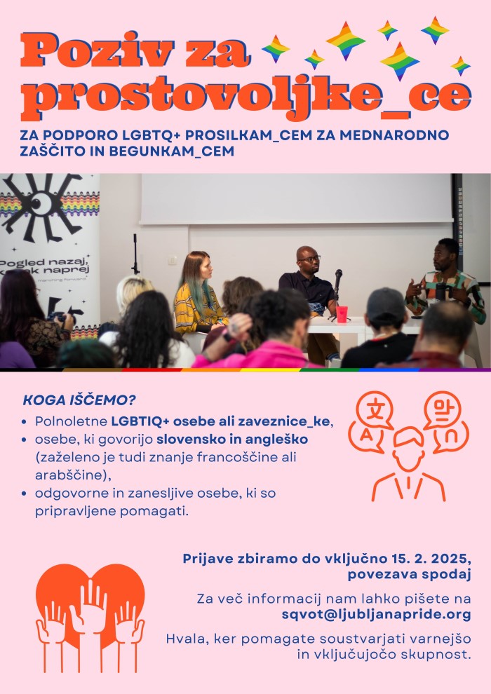 Da bi osebam omogočile_i večjo socialno vključenost, podporo in povezovanje z LGBTIQ+ skupnostjo, iščejo prostovoljke_ce, ki bodo pomagale_i pri: