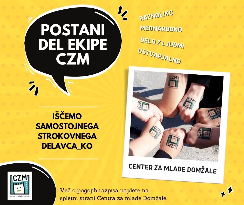 Center za mlade Domžale razpisuje prosto delovno mesto samostojni strokovni delavec VII/2 (m/ž).