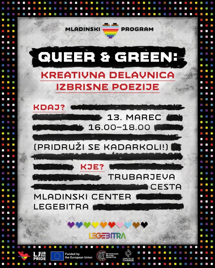 Nekatera besedila, ki bodo nastala na delavnici, bodo morda kasneje postala del plakatov, razstavljenih v Ponosni vasi na dan Parade ponosa, 13. junija 2026.