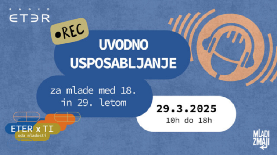 Javni zavod Mladi zmaji vabi mlade med 18. in 29. letom, ki vas mika soustvarjanje medijskega prostora na Radiu Eter, da se jim pridružite na usposabljanje, ki bo v soboto, 29. marca, pri Mladih zmajih Črnuče (Dunajska 367, Ljubljana). Usposabljanje bo potekalo od 10.00 do 18.00.