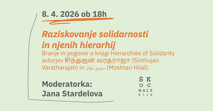 Lepo vabljene_i v sredo, 8. aprila ob 18.00 v Galerijo ŠKUC na skupinsko branje in pogovor o knjigi “Hierarchies of Solidarity” avtorjev சிந்துஜன் வரதராஜா (Sinthujan Varatharajah) in مشترى هلال (Moshtari Hilal).