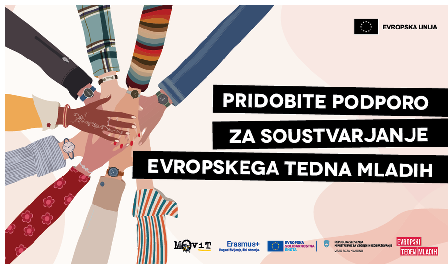 Objavljen je razpis za sofinanciranje dogodkov, ki je namenjen obeležitvi evropskega tedna mladih, ki bo potekal med 12. in 19. 4. 2024.