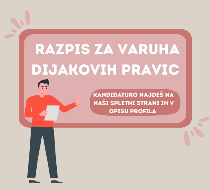 Dijaška organizacija Slovenije (DOS) objavlja razpis za Varuha dijakovih pravic za obdobje enega leta.