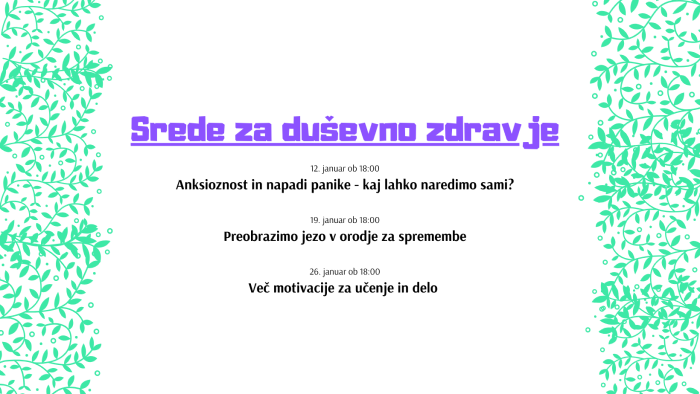 - 12. 1. ob 18.00 – Anksioznost in napadi panike – kaj lahko naredimo sami?