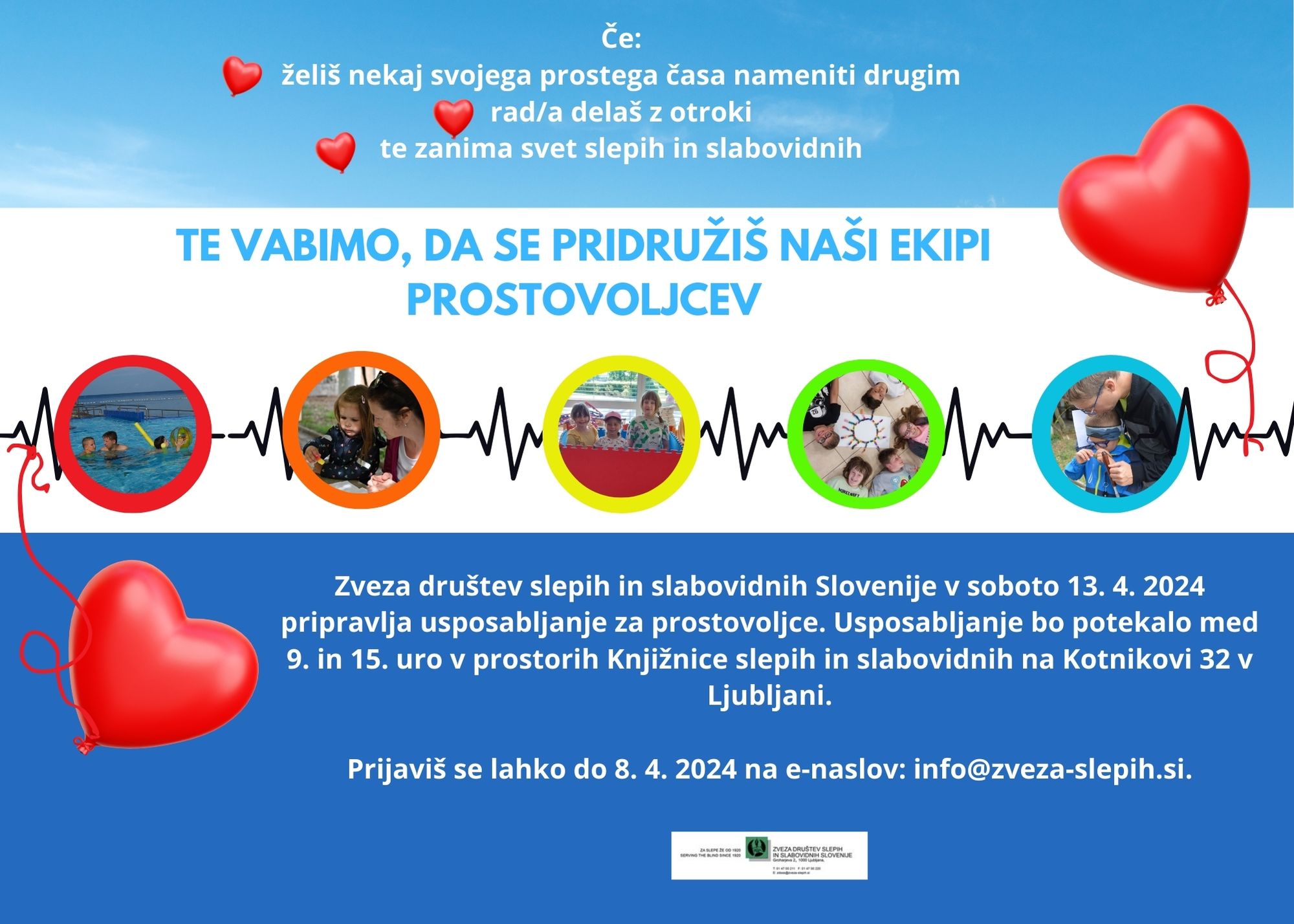 Na zvezi društev slepih in slabovidnih Slovenije izvajajo različne aktivnosti za otroke, mlade in družine; tabore, srečanja družin, prilagajanje iger… Vse to pa ne bi bilo mogoče brez pomoči prostovoljk_cev.