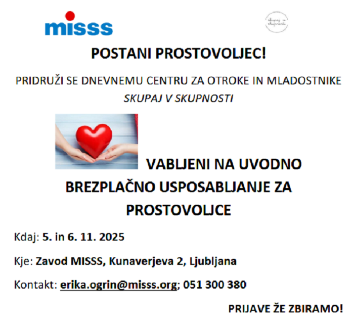 Zavod MISSS vabi na usposabljanje za nove prostovoljce_ke.
